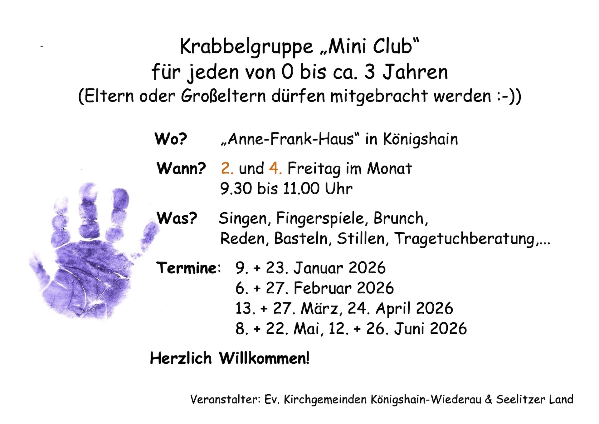 jeden 2. und 4. Freitag im Monat, 9.30 bis 11.00 Uhr - "Anne-Frank-Haus" in Königshain