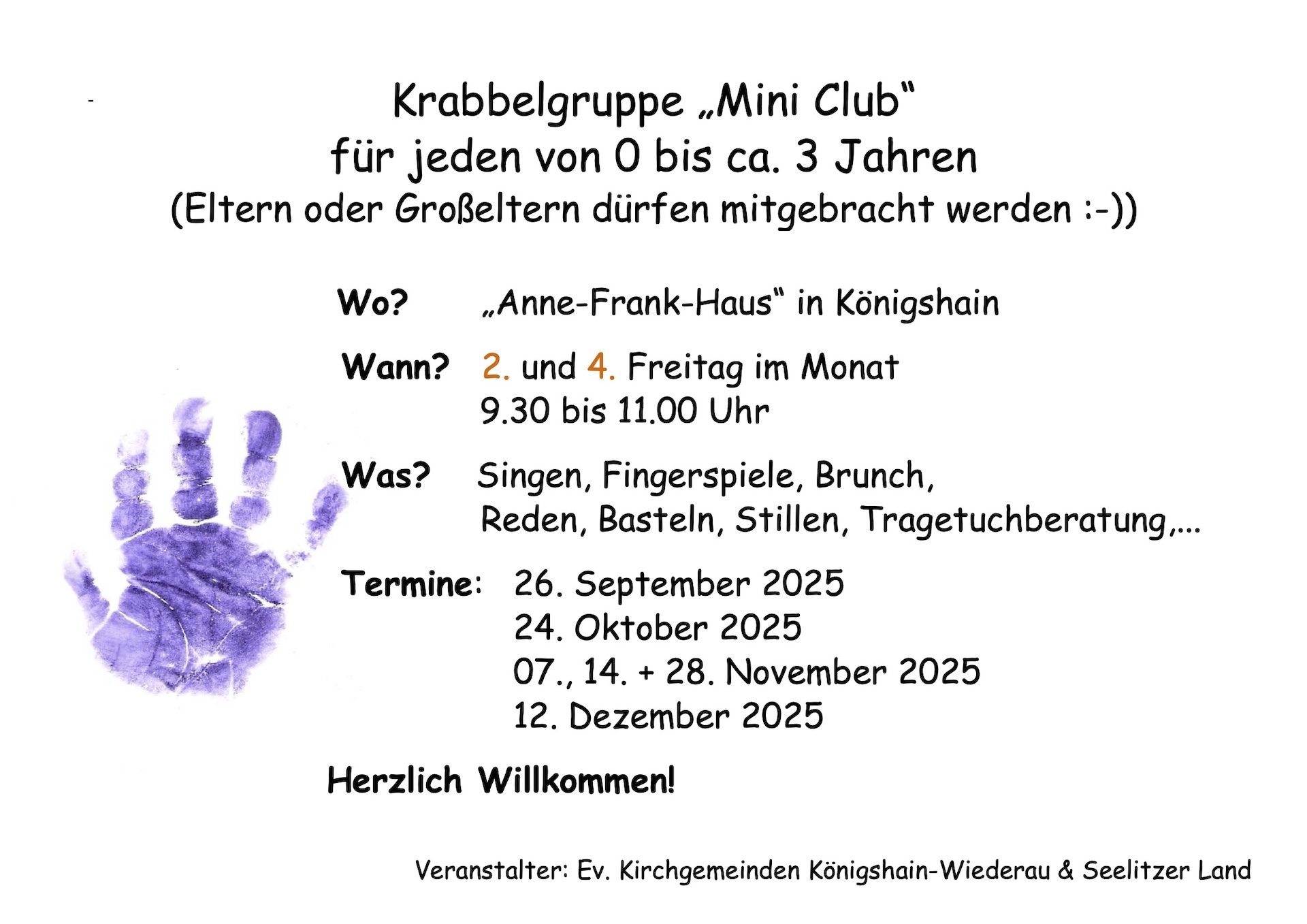jeden 2. und 4. Freitag im Monat, 9.30 bis 11.00 Uhr - "Anne-Frank-Haus" in Königshain