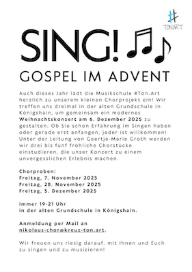 SING! Gospel im Advent - Chorprojekt und Weihnachtskonzert